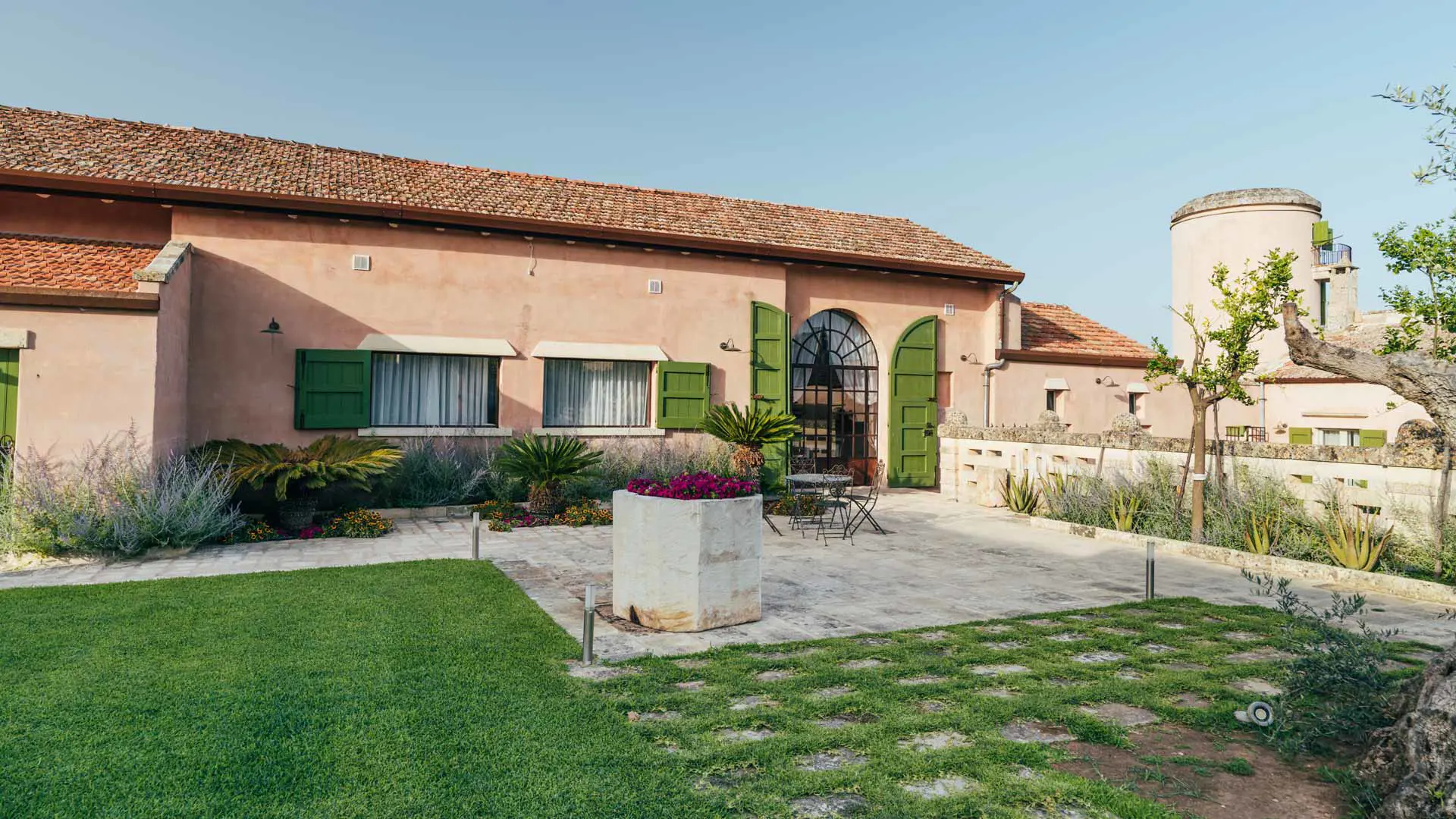 Covering over 18 hectares, the estate grows organic olives, aloe vera, wheat, grapes, and medicinal plants. Join a guided aloe vera tour, practice open-air yoga, take a boat trip, or explore the countryside on an ecobike. Food lovers can cook with the chef and enjoy curated wine experiences, all inspired by local traditions. Stroll among courtyards and fields between activities, for a deeper connection to the land.